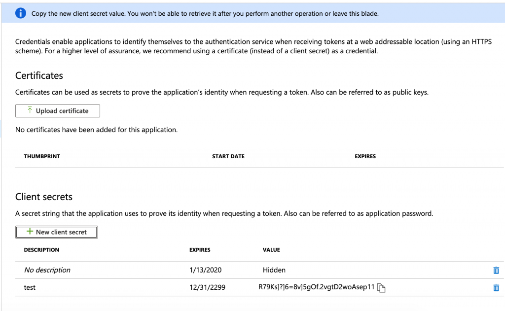 3. Enter a brief description of the secret and define a validity period that includes a start date and end date: