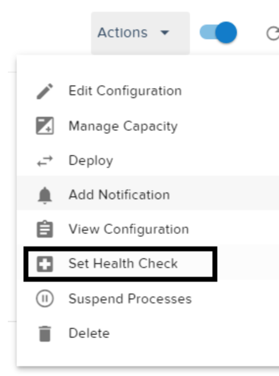 Actionsmenu at the top left. Click onSet Health Checkfrom the menu: