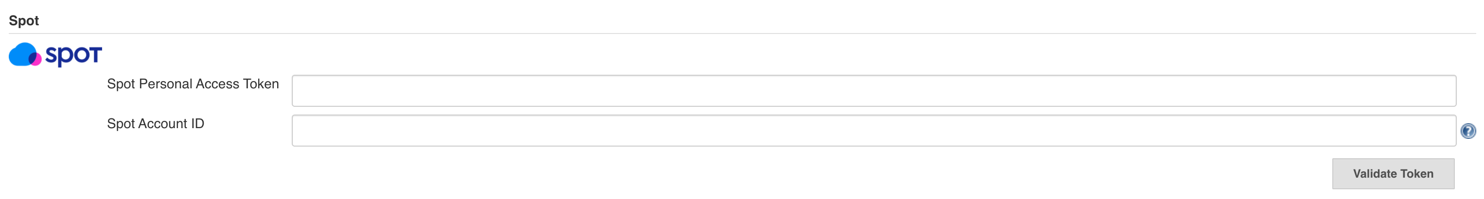 - Navigate to Manage Jenkins > Configure System, scroll down to the Spot section and add the API Token generated in Step 1, alongside an appropriate Account ID - this will be the default account ID in case no Account ID is specified for a specific Cloud (detailed in the next steps).